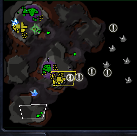 그 다음 8시를 밀고 6시까지 밀어주세요. 수정이 3시에 많이 모여있어서 먼저 밀고 싶겠지만 이 구역은 잘못 들어가면 번식자에게 당하기 쉽고 기지를 다 밀기 어렵기 때문에 천천히 한다는 마음을 가지고 임하시면 됩니다. 8시 6시의 번식자가 더 골치아픕니다.