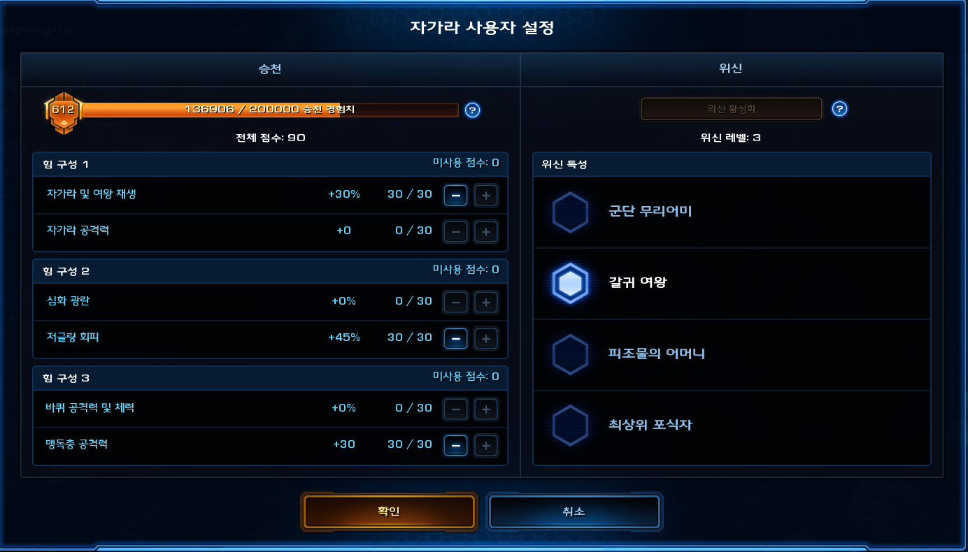 2특성은 저글링 회피, 3특성은 맹독충 공격력을 찍어주세요